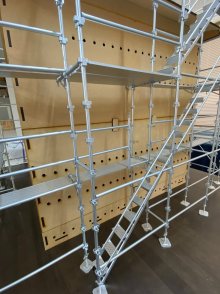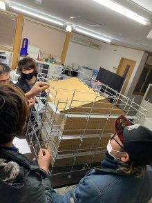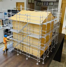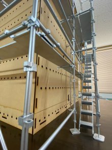 当社では『ウェッジバインディングシステム』足場教育用模型、部材の全てが1/10スケールで軽く精巧な作りで、事務所内で細やかな教育、詳細な現場の打ち合わせができる、とても画期的な模型を導入しております。 この日も現場スタッフで和気あいあいと組立て、打ち合わせを行いました。