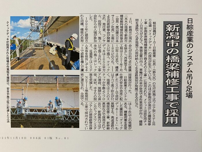 「新潟市橋梁維持補修技術協会」主催による技術研修会が開催され、弊社は足場施工で参加させて頂きました。