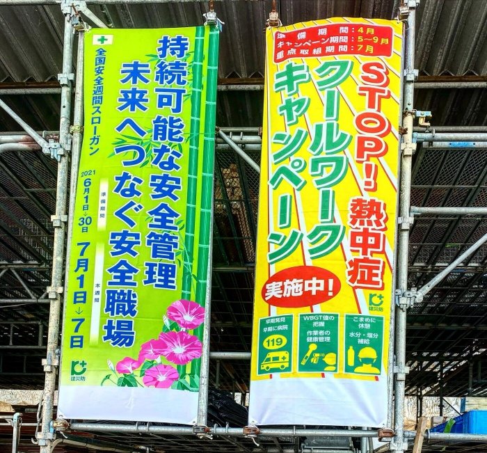 令和3年度 全国安全週間が7月1日~7日に実施されます。 準備期間中の6月、鷹国建設でも準備を始めてます。 今年度のスローガン『持続可能な安全管理 未来へつなぐ安全職場』 これから来る夏に向け、熱中症対策を念頭に置き、日々現場作業に勤めて参ります。