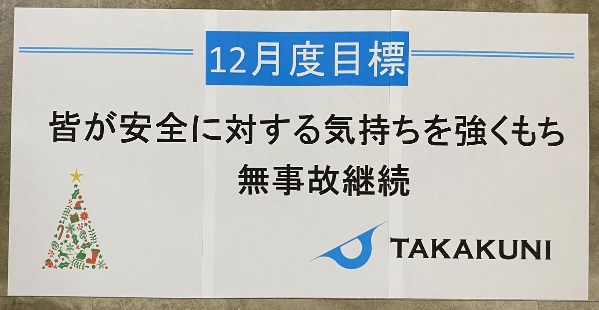 寒さが一段と厳しくなる季節ですが、気を引き締めて安全第一で1年を締めくくろう‼