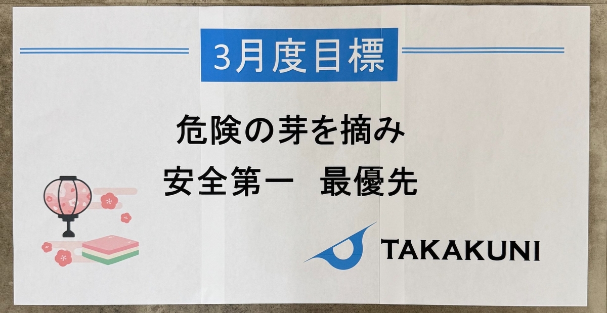 寒さが少しずつ和らぐ頃ですが、安全への気持ちは切らさず引き締めて行こう‼